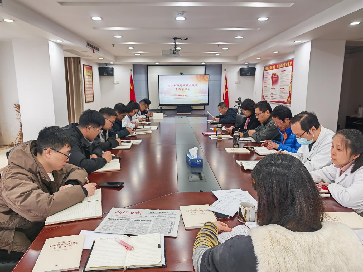 志愿服务结束后,中心随即召开树立和践行正确政绩观专题学习会。中心领导带头领学相关内容,围绕正确政绩观的核心要义、实践要求深入解读,引导党员深刻把握其重要意义。随后,党员结合质检工作实际,分享《习近平关于树立和践行正确政绩观论述摘编》经典篇目与学习心得。大家一致表示,此次学习让政绩观认识更加清晰,今后将把正确政绩观融入日常履职,以务实作风、扎实行动扛起质检责任、守好质量底线。