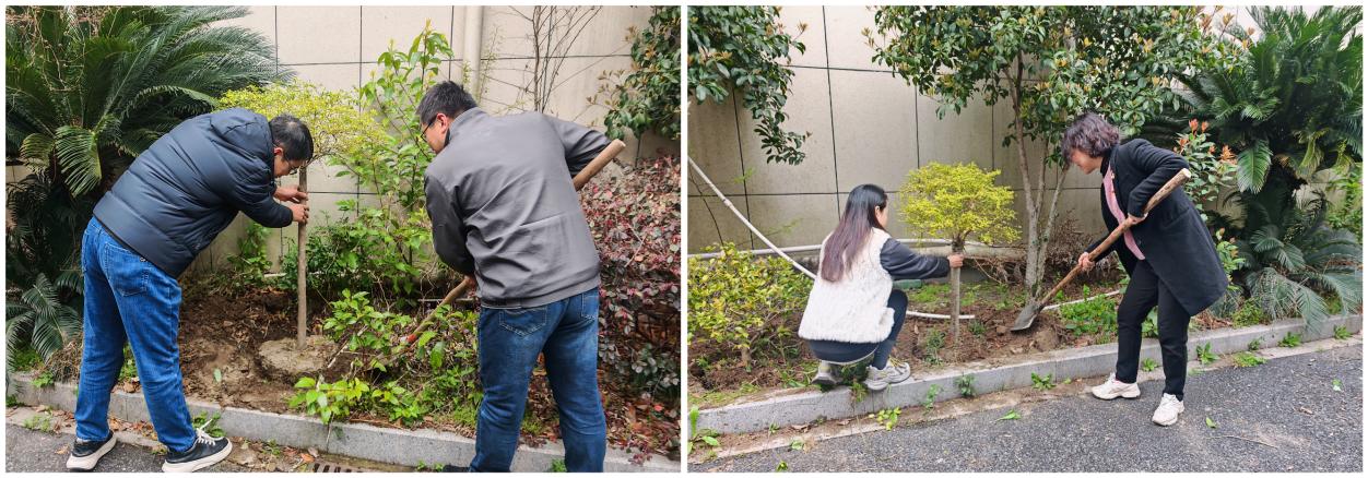 活动伊始,全体党员前往办公区、实验楼周边绿化区域,开展“践行绿色理念・共建美丽家园”志愿服务。党员们手持清洁工具、园艺剪刀,分工协作、干劲满满,对绿化带内生活垃圾、杂草枯枝进行全面清理,对歪斜苗木逐一扶正修剪,细致打理每一处绿化角落。经过辛勤劳作,周边环境焕然一新,不仅营造了整洁优美的工作生活氛围,更让党员在实践中深化绿色发展认知,真切体会“办实事、求实效”的政绩观内涵。